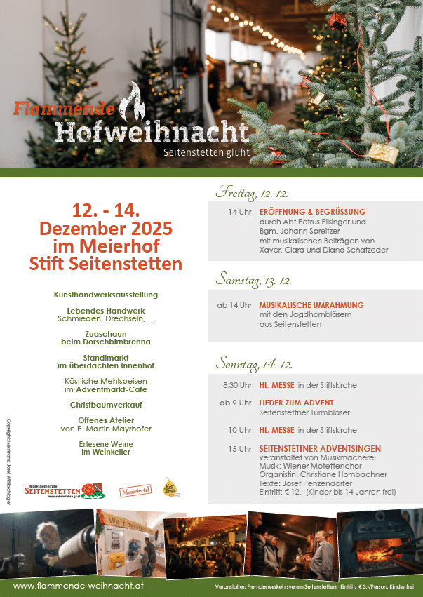Mittwoch, 24.12.2025 – Heiliger Abend8:00 Uhr Heilige Messe in der Stiftskirche8:30 bis 10 Uhr Beichtgelegenheit10:00 Uhr Weihnachts-KIKI im Theatersaal15:00 Uhr Kindermette in der Stiftskirche17:00 Uhr Erste Pontifikalvesper von Weihnachten in