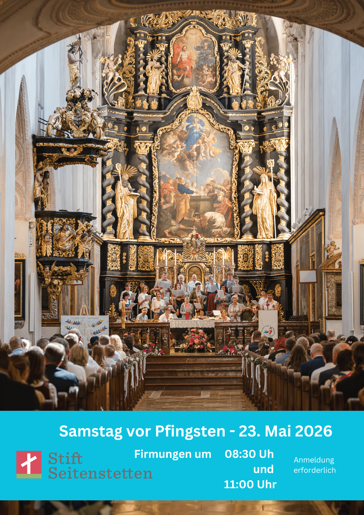 Am Pfingstsamstag 23. Mai 2026 finden um 8.30 Uhr & 11.00 Uhr die Firmungen statt. Anmeldung erforderlich. Hier anmelden
